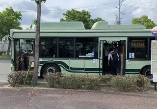 1.バス停の前ドア(降り口)及び後ろドア(乗り口)と、バス停歩道の植栽の切れ込みが一致していないため、乗降者は一旦車道に降りて乗降しなければなりません。【事例:西京区 野田町(西行)】(写真あり)