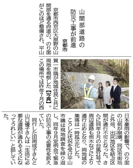 「山間部道路の防災工事が前進」