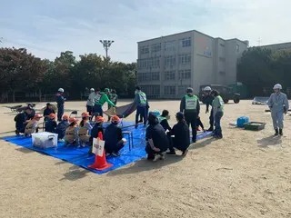 10月27日(日)午前中は、西京区総合防災訓練にて参加し、災害用マンホールトイレの設置・片付けの訓練を行いました。